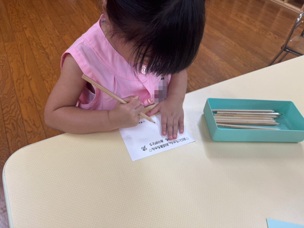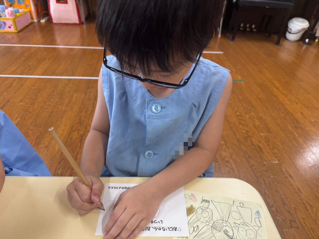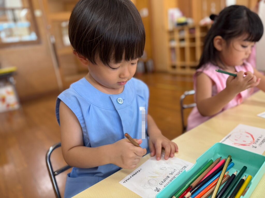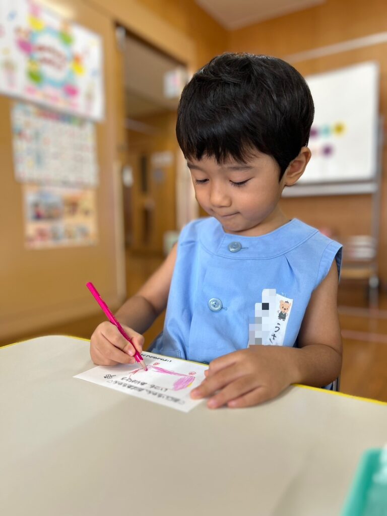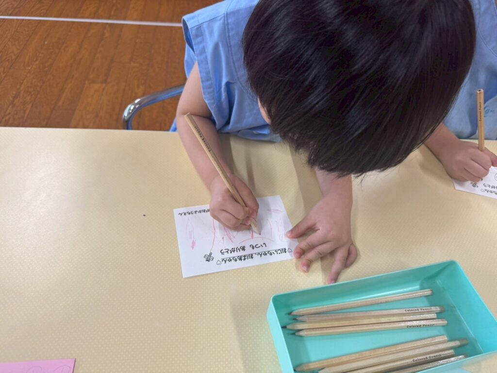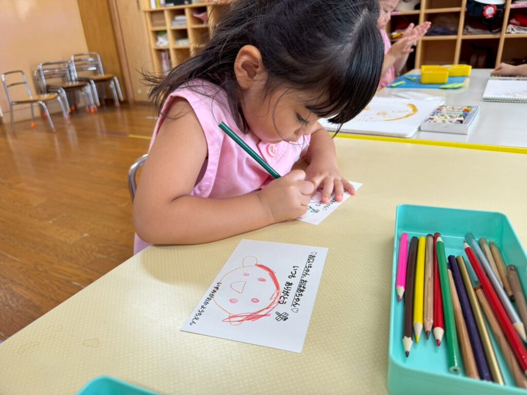 9月の活動の様子です!敬老の日に合わせて、おじいちゃんおばあちゃんのお家へ届けるハガキを描きました👵👴大好きなおじいちゃんおばあちゃんを思い浮かべながら心を込めて描きました🍀