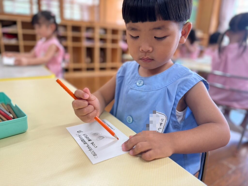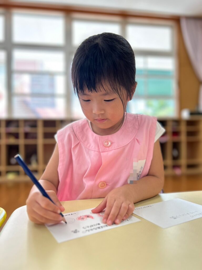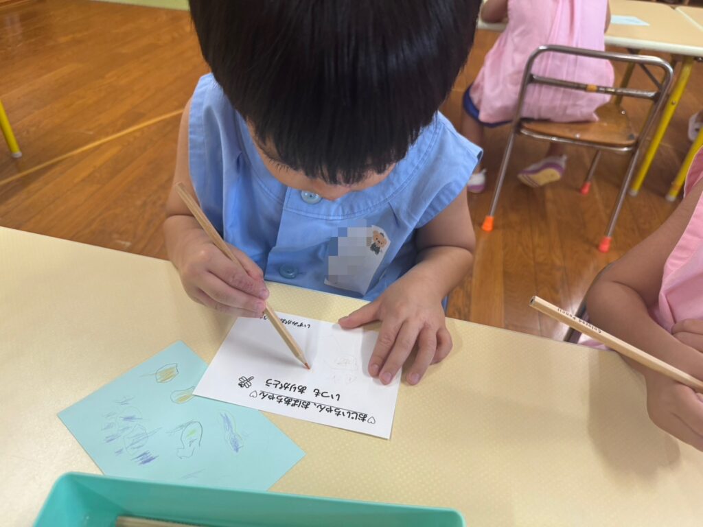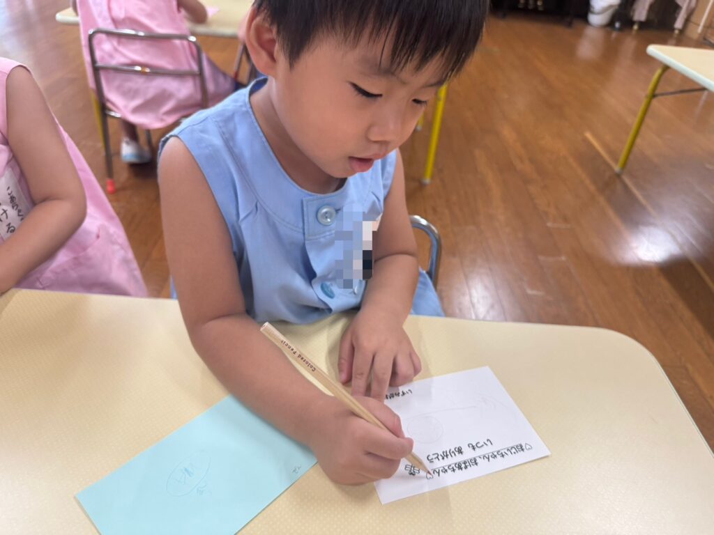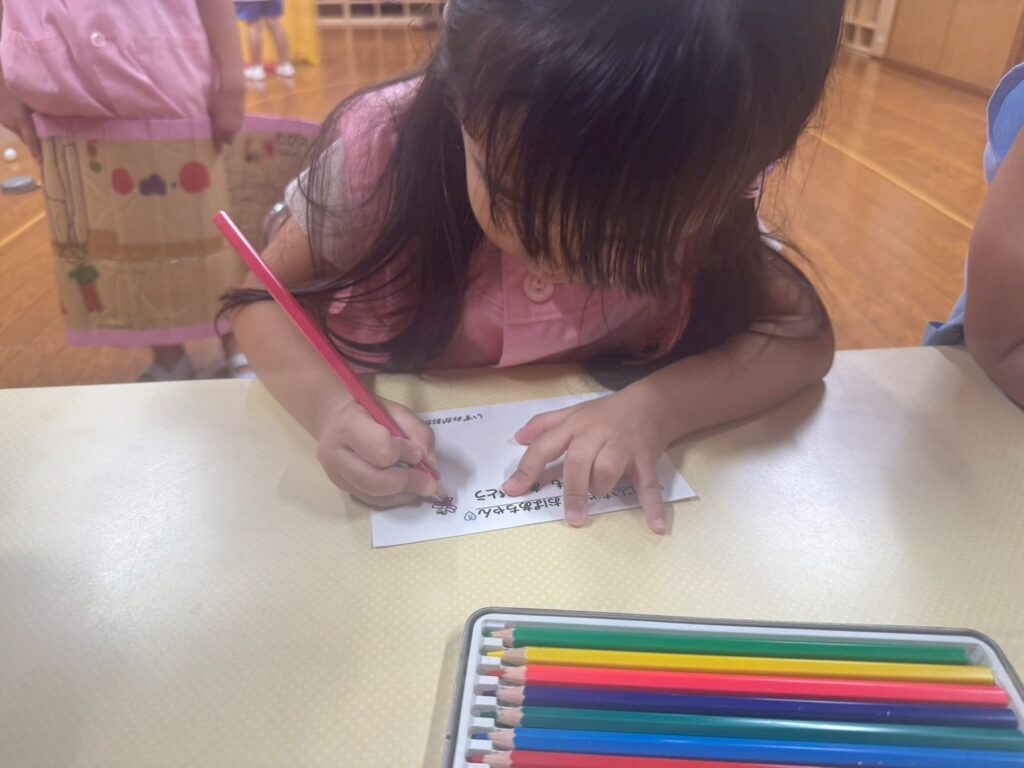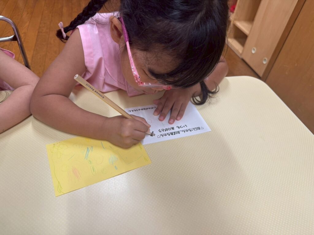 9月の活動の様子です!敬老の日に合わせて、おじいちゃんおばあちゃんのお家へ届けるハガキを描きました👵👴大好きなおじいちゃんおばあちゃんを思い浮かべながら心を込めて描きました🍀