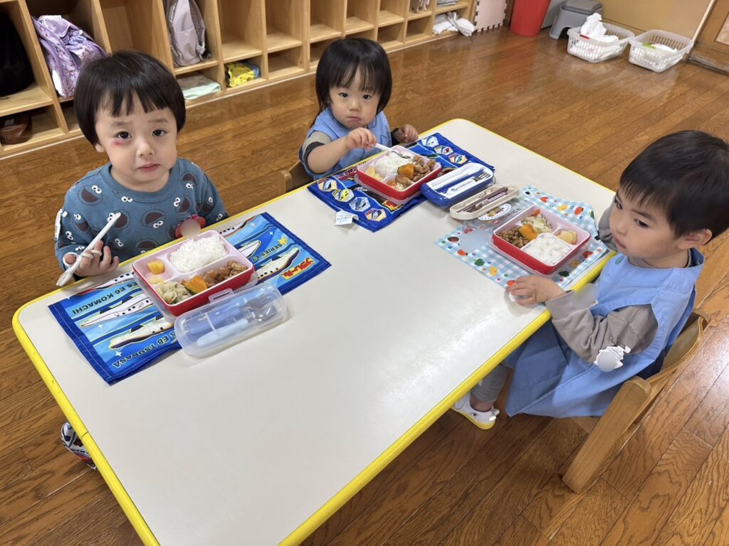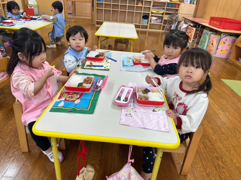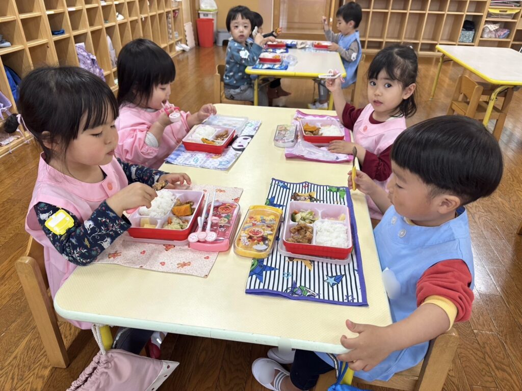 ぺんぎんさんはお弁当給食、年少さん・年中さん・年長さんは配膳給食です🍱♬