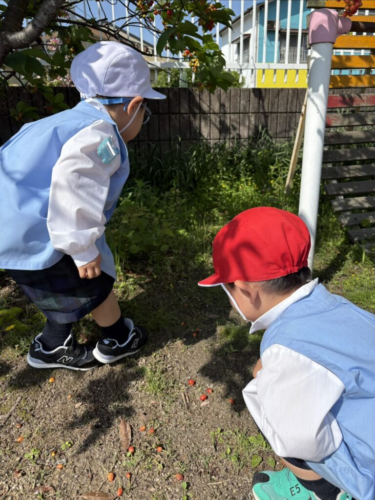 泉ヶ丘幼稚園の隣には泉公園があり、園庭にもさくらんぼやキンモクセイがあります🌳✨️