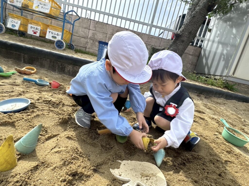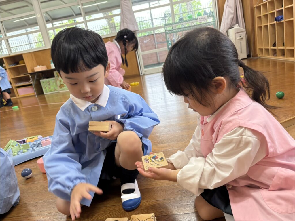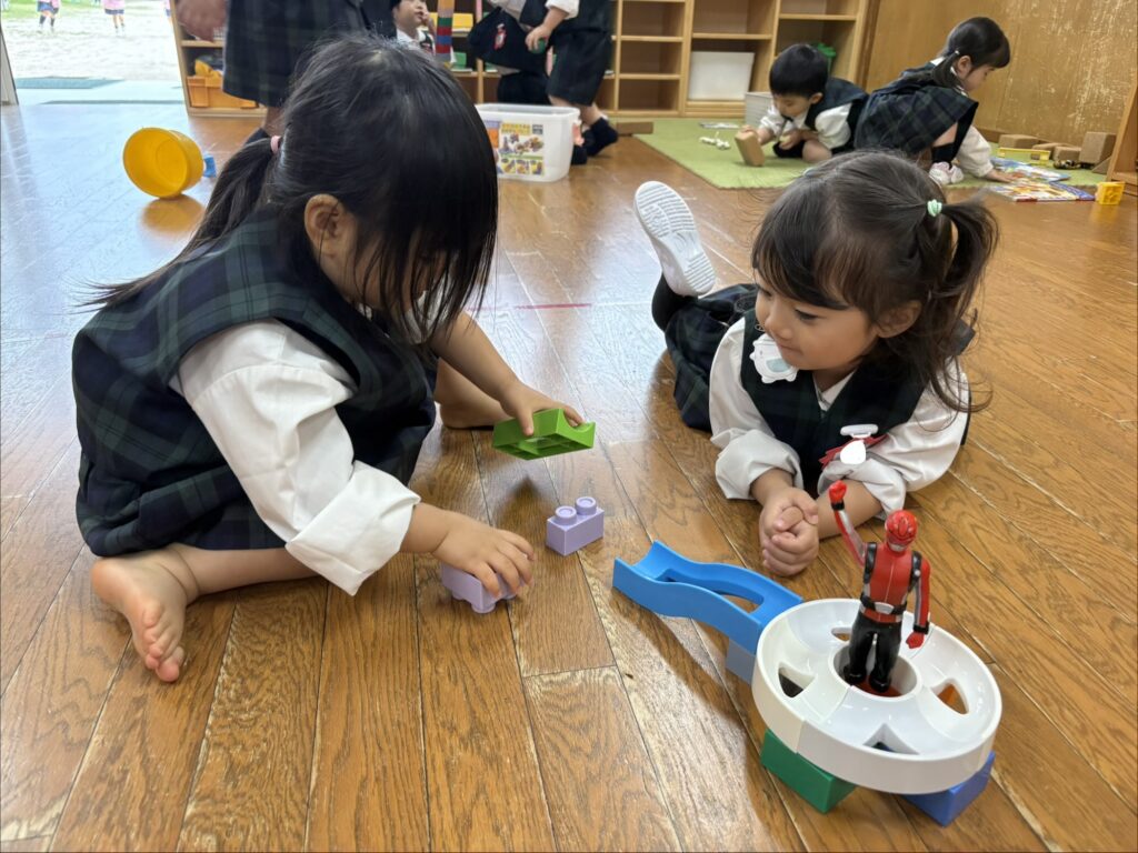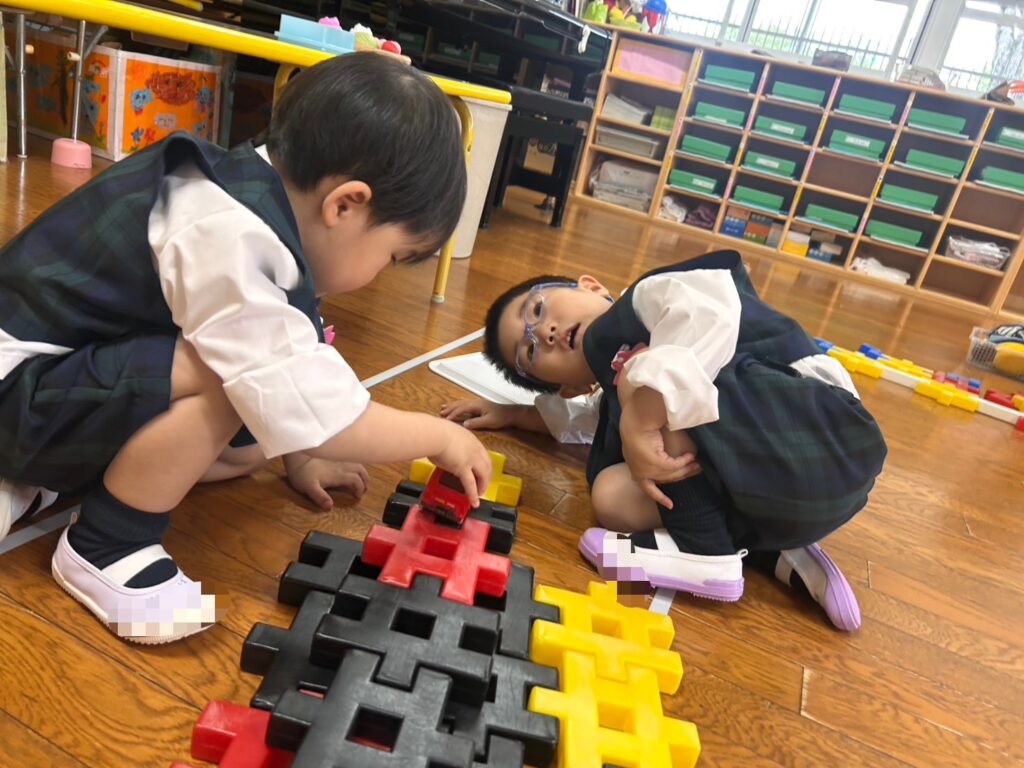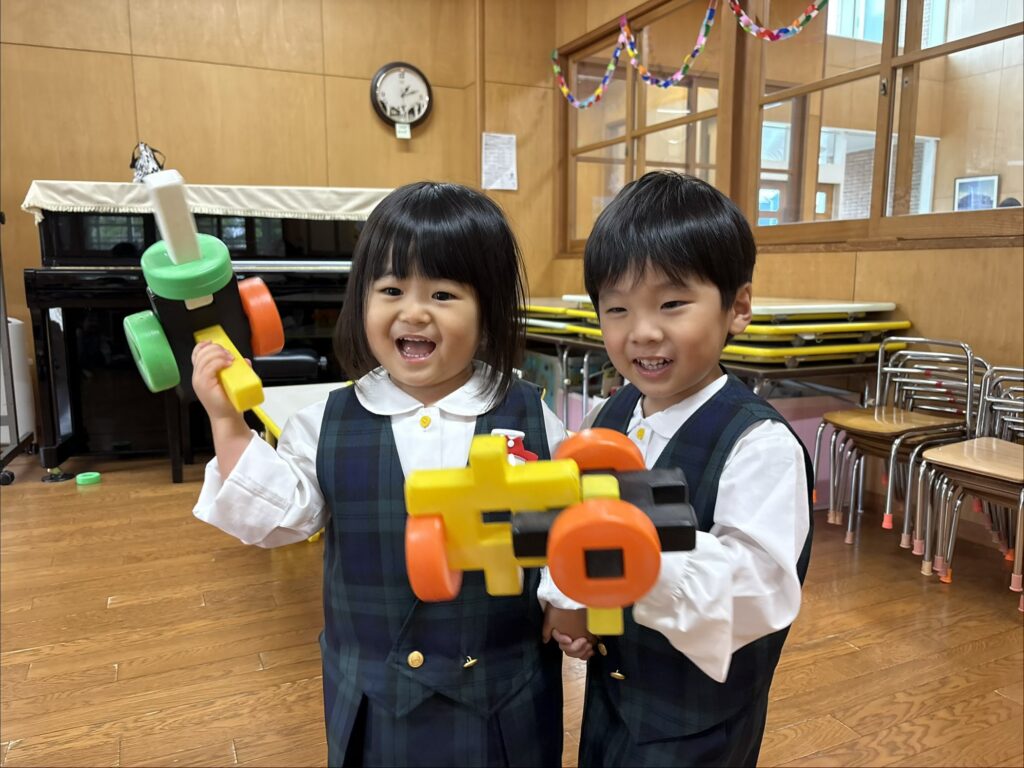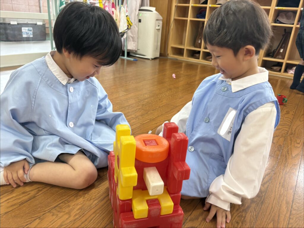 お部屋でもお気に入りのおもちゃができたり、お友達と「どうぞ」をしながら一緒に遊んでいるところも見かけるようになりました😆💓