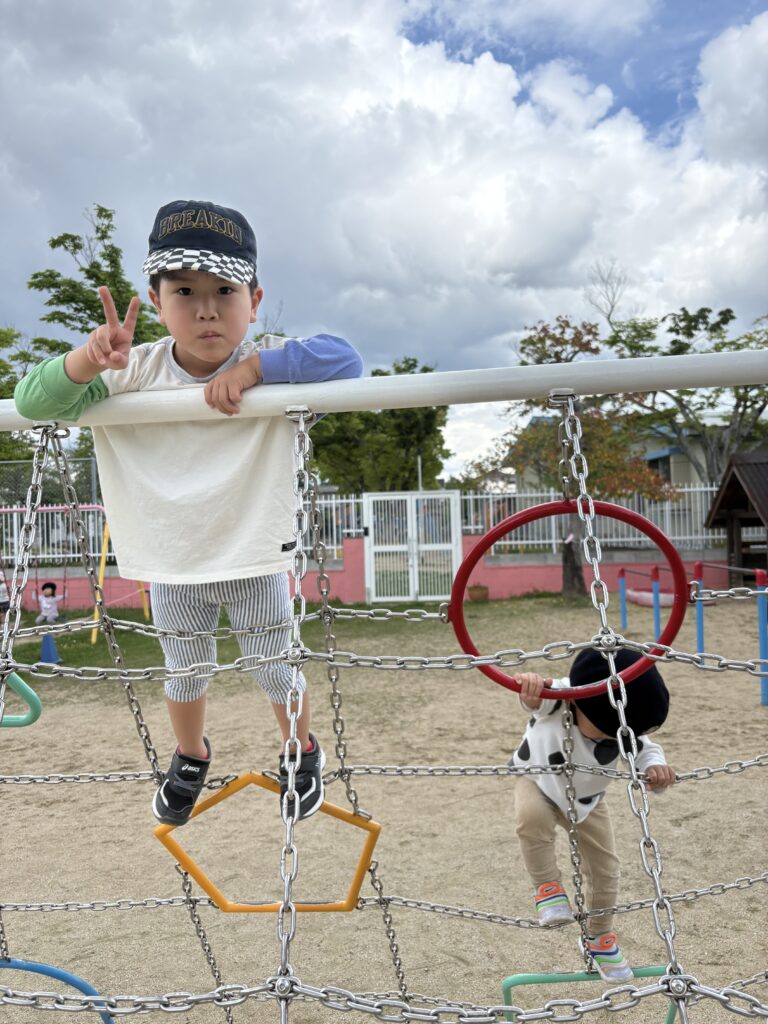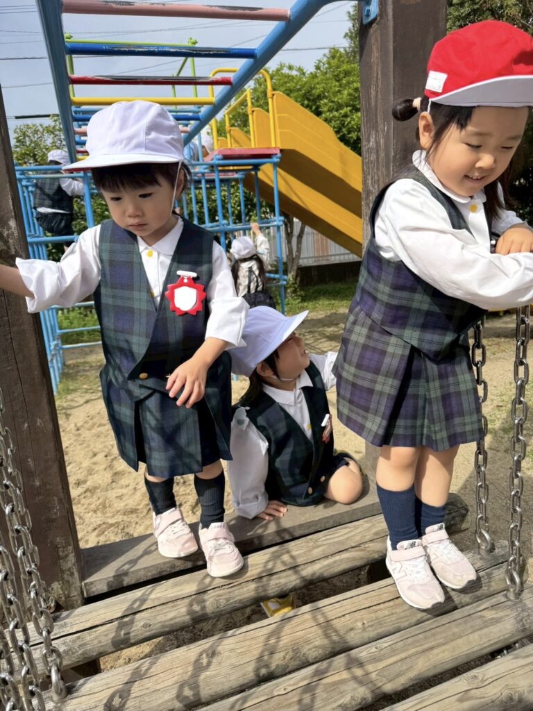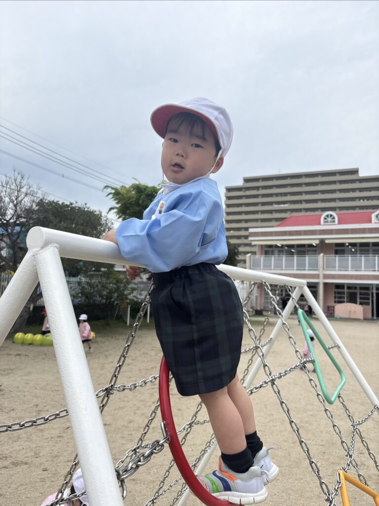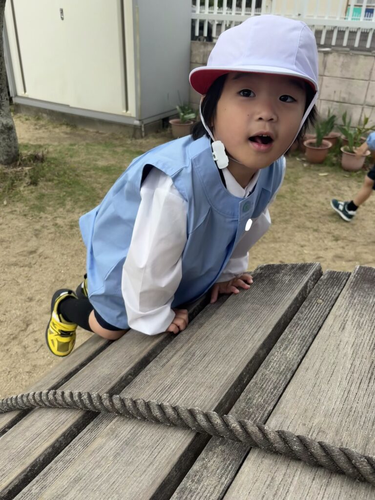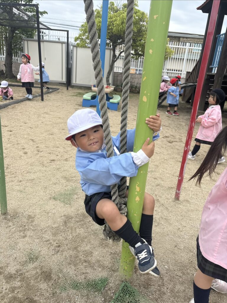 園庭の遊具でたくさん体を動かして他の学年のお兄さんお姉さんとも遊びましたよ♪