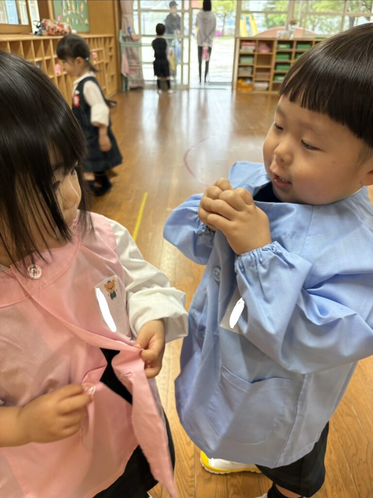 スモックのボタンやたたみ方も練習しています👕💨